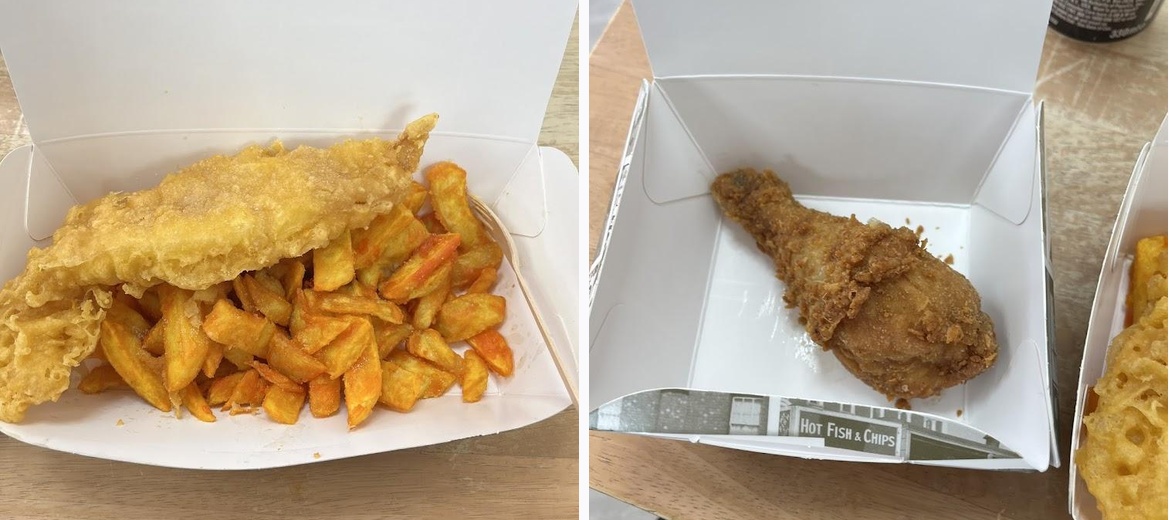 Food absolutely amazing !!!! Best chippy I've ever been to.. Battered chips are soooo nice. The " Whale" cod is amazing. Highly recomended .